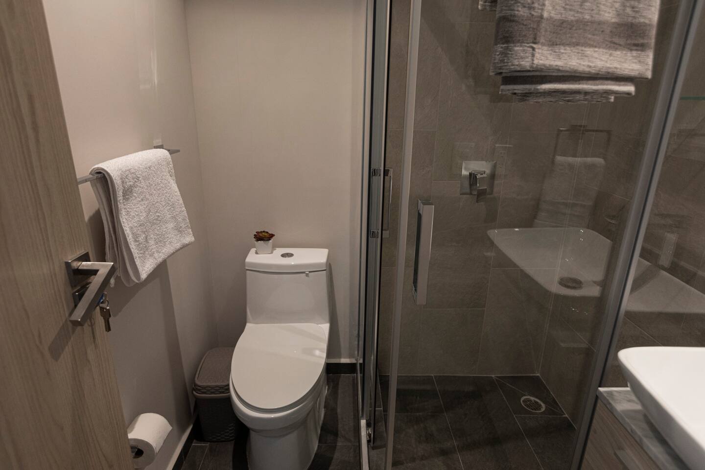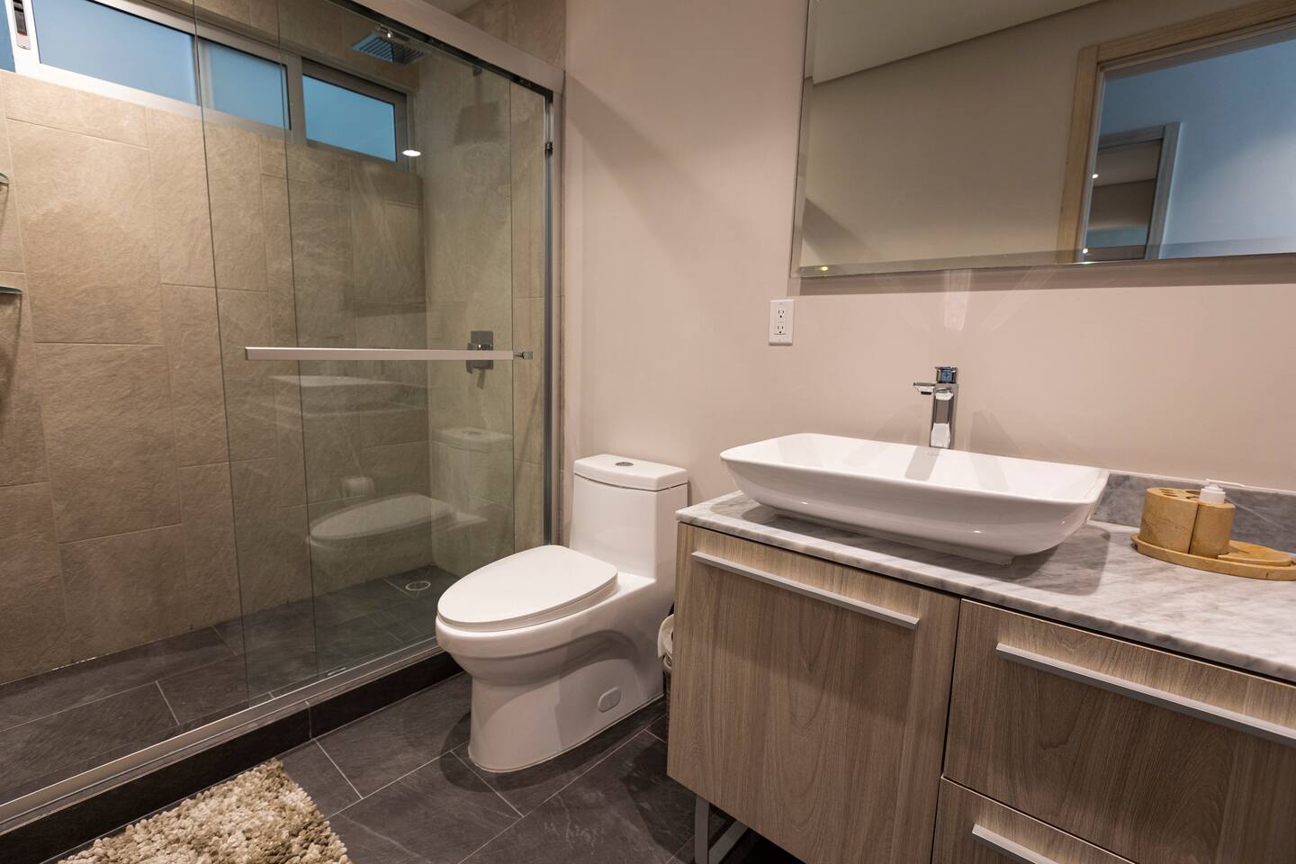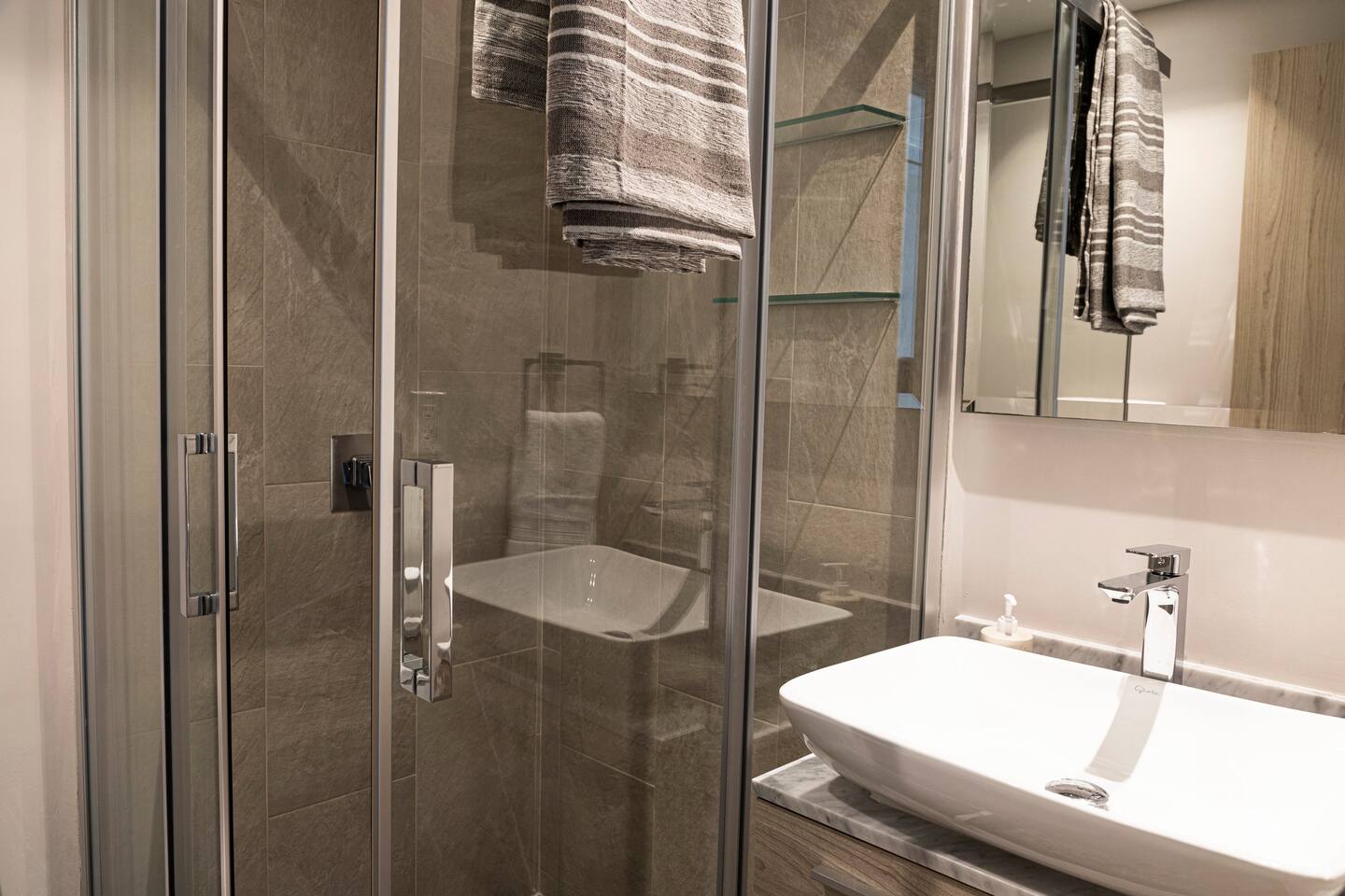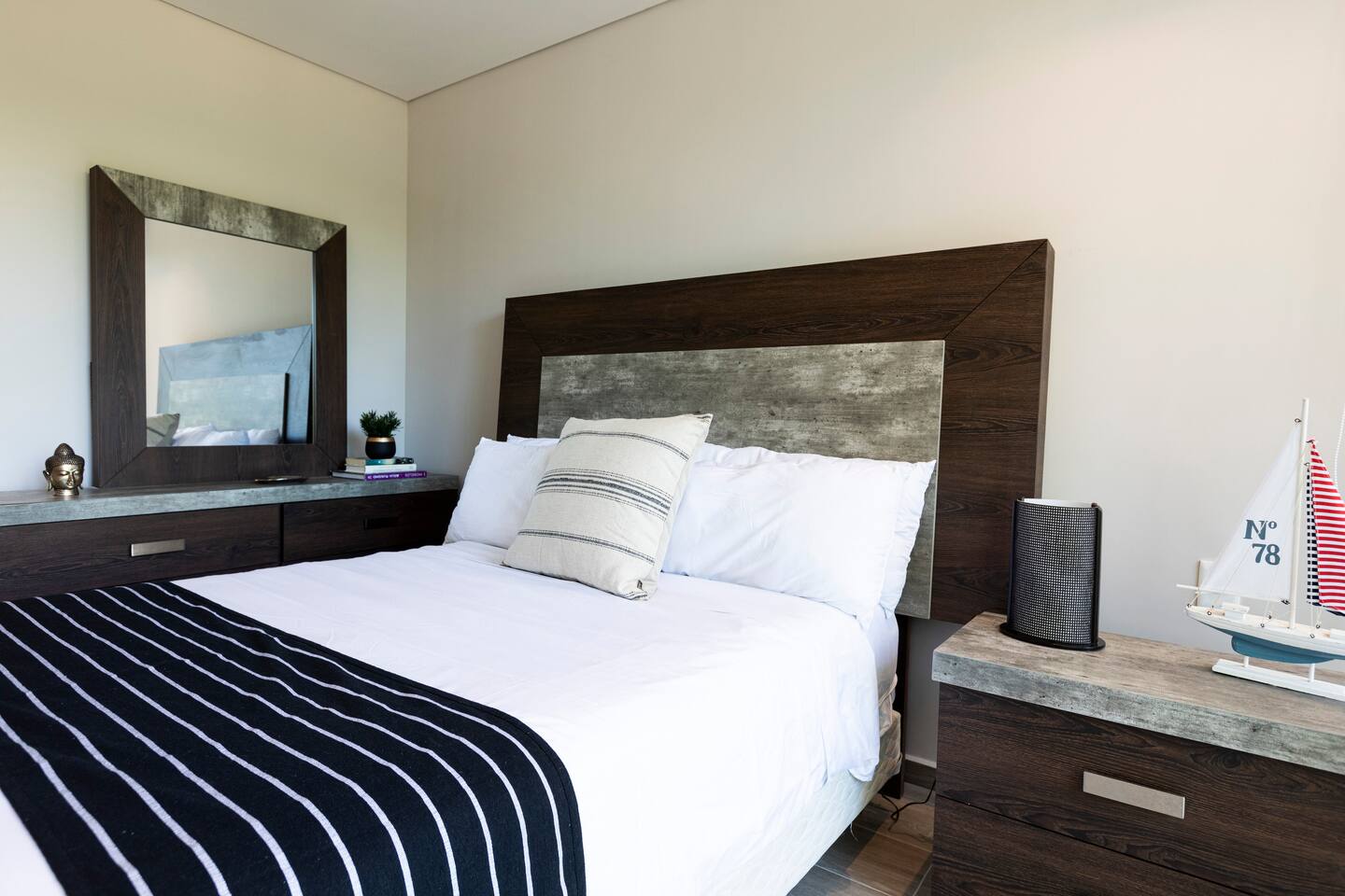 This distinguished penthouse offers the perfect escape to quiet living. The first bedroom has a comfortable queen bed, a custom closet and a full bath. The master bedroom also features a queen bed, a walk-in closet and a full bath. A fully-appointed kitchen and a stylish living room with a comfortable sofa-bed and a flat screen Smart TV complete the luminous living space. High speed WIFI, A/C, hair dryer, iron, and premium quality toiletries have been provided to enhance your stay.